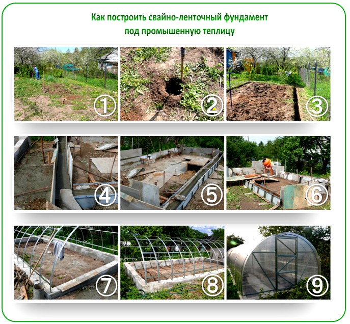 Еще один распространенный тип фундамента – плитный. Он защищает теплицу от сильного перепада температур, не пропускает внутрь вредных насекомых, решает проблему с коммуникациями за счет расположения колодца.