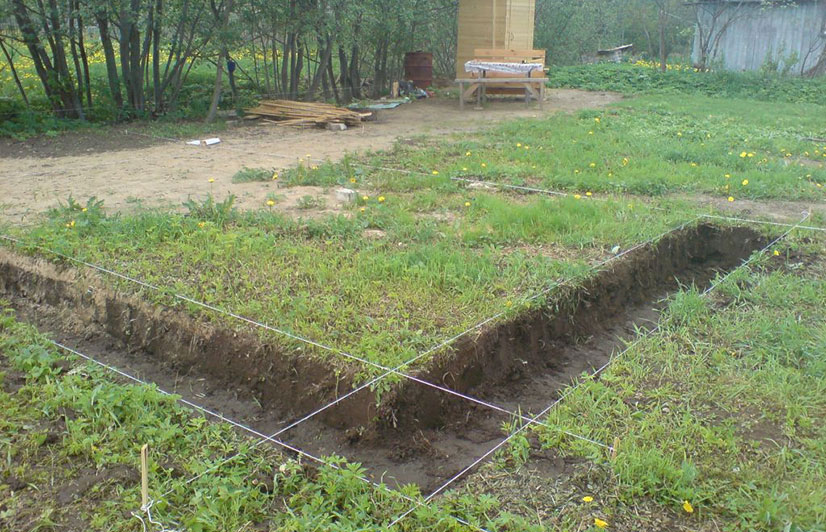 - Рытье траншеи. Глубина рва должна приравниваться глубине, на которую земля промерзает в холодное время, плюс еще 15 см, а ширина близко 70 см. При этом ширина всей основы составляет 40 см.