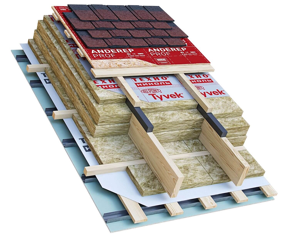 Немаловажно для каркасного дома обустроить правильный пирог теплоизоляции кровли. Это позволит снизить расход энергии на отопление здания до 25-30 процентов.