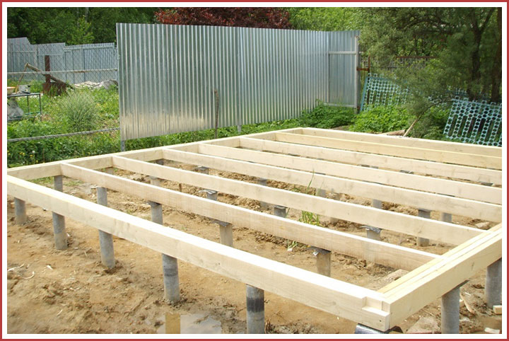 Сначала готовую «коробку» дезинфицируют и гидроизолируют. Для гидроизоляции на столбы укладывают рубероид в пару слоев. После чего берут брус 50х150, чтобы сэкономить на расходном материале.