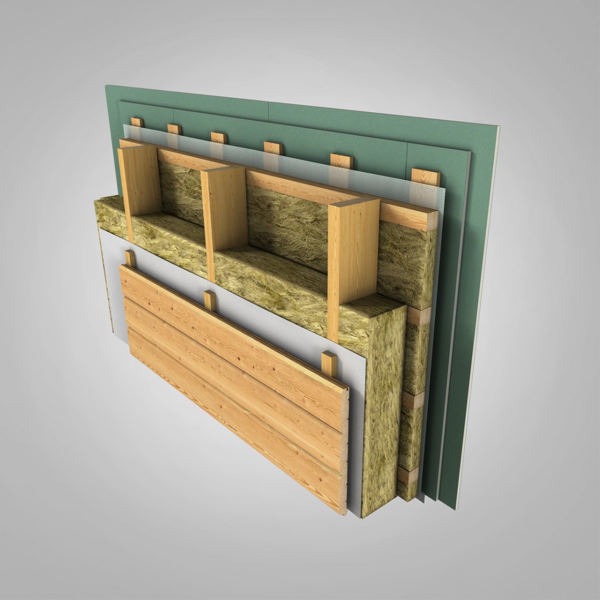 При использовании полиуретана и полистирола необходимости в такой обрешётке нет, поскольку материалы работают иначе. Облицовку можно крепить прямо на влаго- или пароизоляциию, в зависимости от того, о внешних или внутренних стенах идёт речь.