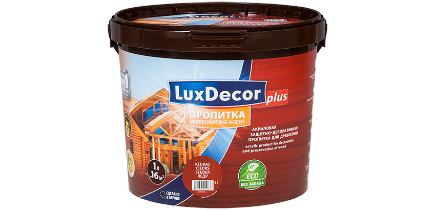 Пропитка для дерева на основе акрила LuxDecor Plus — это уникальный высококачественный бюджетный продукт, способный противостоять сразу нескольким негативным погодным факторам. Обработка LuxDecor Plus гарантирует укрывной тонкий слой, защищающий одновременно от заражения дерева грибком и пагубного воздействия грызунов. Пропитка подходит для внутренней и наружной отделки помещения, отсутствие растворителей и алкидных смол обеспечивает безопасность для здоровья людей и животных, проживающих в доме. Подходит для использования в детской комнате, на деревянных аксессуарах и игрушках, не токсична, содержит в составе воск, повышающий водоотталкивающие свойства обработанной поверхности. Тиксотропность средства экономит время обработки при использовании любых инструментов для покраски. Обеспечивает в результате ровный шелковистый слой без подтеков и неровностей (при двукратном нанесении), успешно защищающий древесную поверхность в течение указанного эксплуатационного срока.